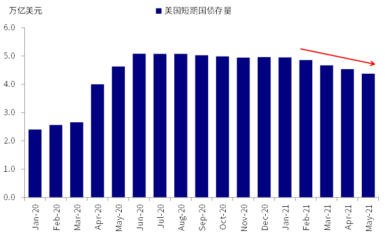 伴随TGA账户规模的缩减,短期国债的存量也在持续下降