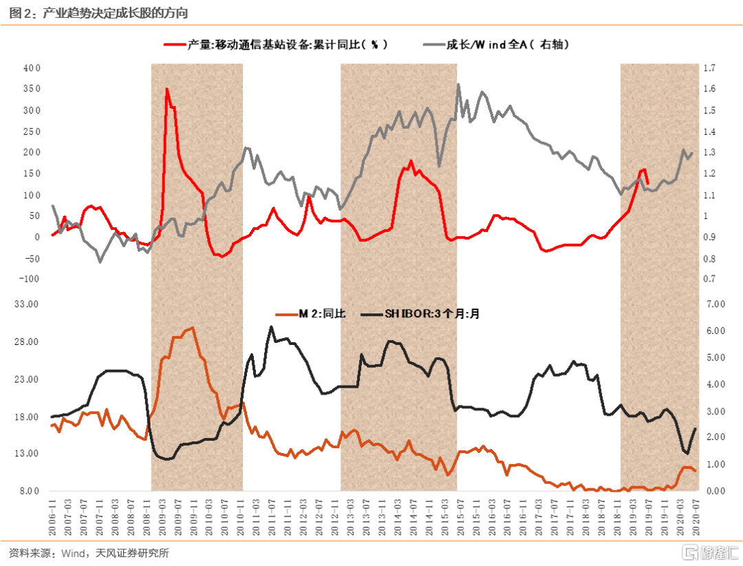 因此,A股的广义成长股产业周期一旦带动业绩快速上行,比如10年的IPHONE4、13年的移动互联,都会带动广义成长股的快速上行,即便当时的宏观环境是通胀、利率上行、钱荒等宏观环境。