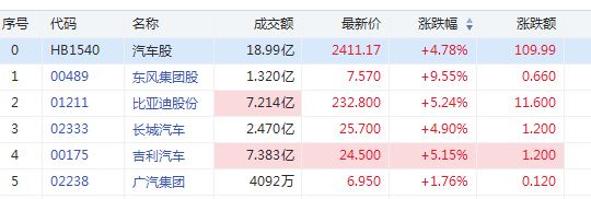 华盛资讯7月5日消息,汽车板块普涨,截止发稿,东风集团股份涨9%,比亚迪股份上涨5.24%,吉利汽车上涨5.15%,长城汽车上涨4.9%。
