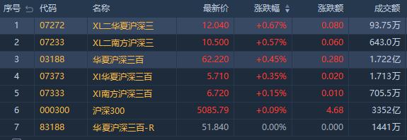 沪深300指数收涨0.09%。其中,华夏两倍做多沪深三百ETF涨0.67%,成交额达93.75万港元;华夏沪深三百ETF(03188.HK)涨0.45%,成交额约1.722亿港元。