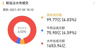 窝轮总成交99.77亿港元,牛熊证总成交75.9亿港元。