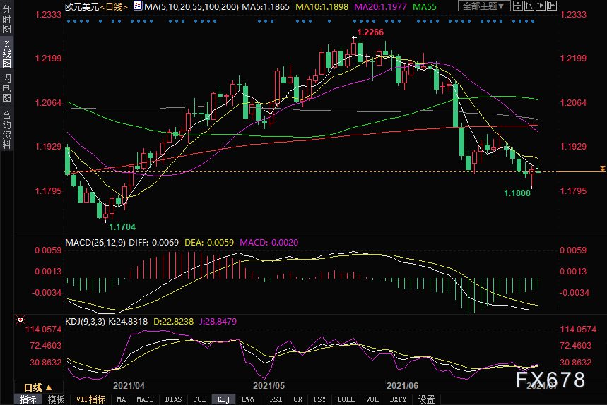 (欧元兑美元日线图)北京时间22:16,欧元兑美元报1.1857。