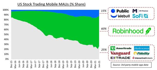 Robinhood美股移动交易月活用户占比高达60%,不愧是散户大本营