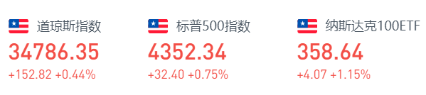上周五(7月2日)截至收盘,纳斯达克综合指数涨116.95点,涨幅0.81%,报14639.33点;道琼斯指数涨152.82点,涨幅0.44%,报34786.35点;标普500指数涨32.4点,涨幅0.75%,报4352.34点。标普500指数连续7日创历史新高,为1997年以来首次。