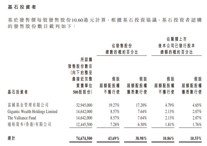 按发售价为每股发售股份10.6港元,根据基石投资协议,基石投资人认购合共74,674,500股发售股份。