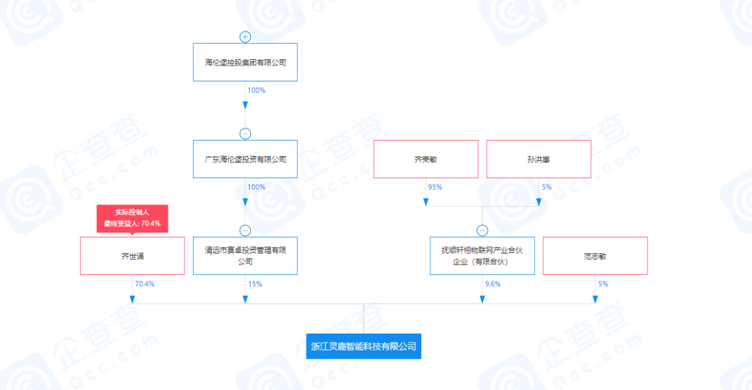 目前持股结构中,齐世通持有70.4%、清远市赛卓投资管理有限公司持有15%、抚顺轩栩物联网产业合伙企业(有限合伙)持有9.6%,此外,一名为范志敏的自然人持有5%。当中,清远赛卓投资正由海伦堡控股通过旗下全资子公司海伦堡投资100%持有。