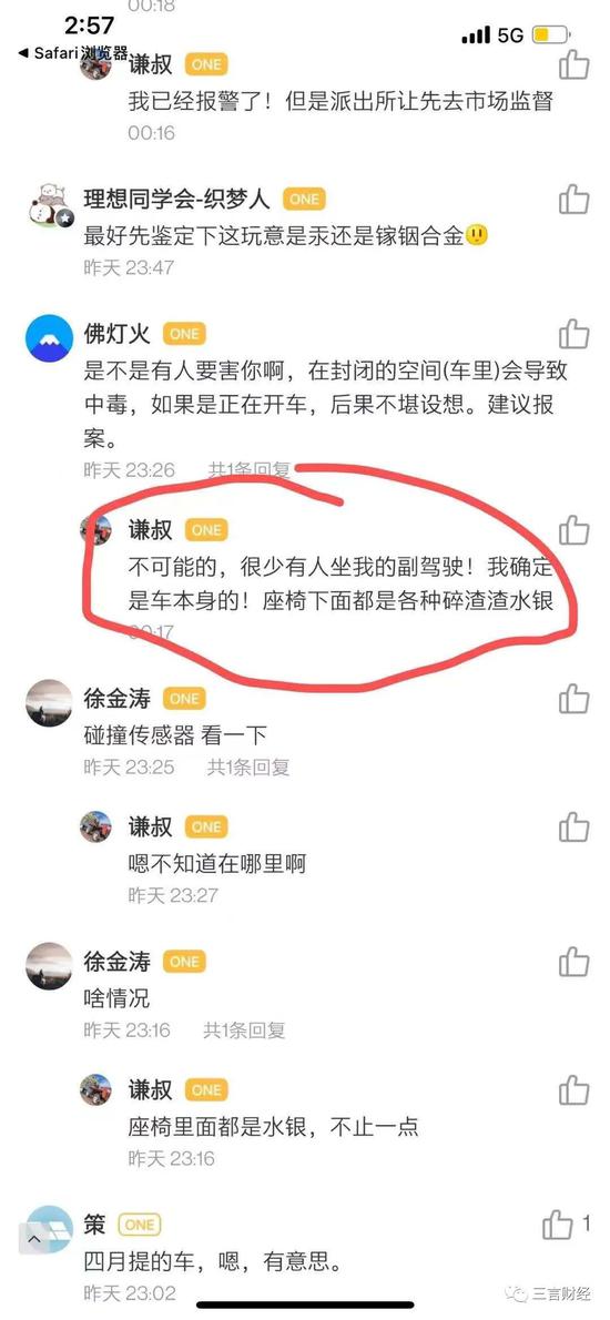 该车主称,座椅已经全部拆解封存,并确认不是个人问题,“很少有人坐我的副驾驶!我确定是车本身的!座椅下面都是各种碎渣渣水银”。