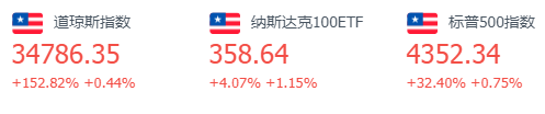 截至上周五收盘,道指涨152.82点,或0.44%,报34786.35点;纳指涨116.95点,或0.81%,报14639.33点;标普500指数涨32.40点,或0.75%,报4352.34点。