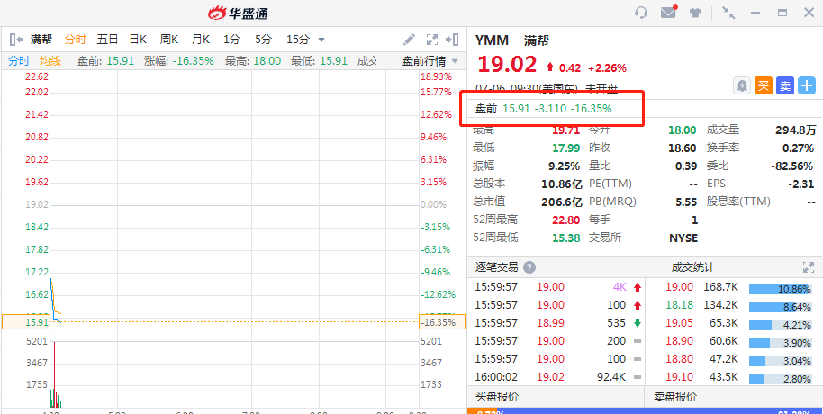 满帮(YMM)盘前跌超16%,BOSS直聘(BZ)盘前跌超10%,此前中国网络安全审查办公室宣布对“运满满”、“货车帮”、BOSS直聘”启动网络安全审查。