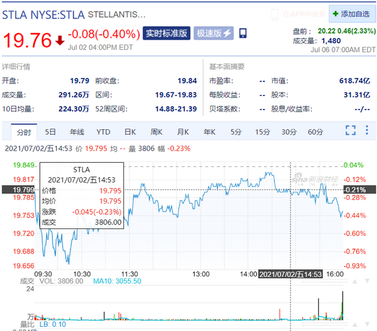 汽车制造商Stellantis(STLA.US)盘前涨2.43%。