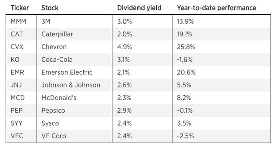 名单中充满了3M(MMM)和 Caterpillar(CAT)这样的优质公司。这两家制造业巨头的股息收益率分别为3%和2%。即使3M今年上涨了近14%,Caterpillar上涨了超过19%,瑞士信贷仍对这些股票给予了买入评级。