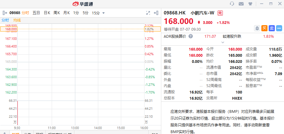 华盛资讯7月7日讯,“造车新势力”小鹏汽车今日挂牌上市,现涨1.82%,当前成交额1.96亿港币,最新总市值超2840亿港币;