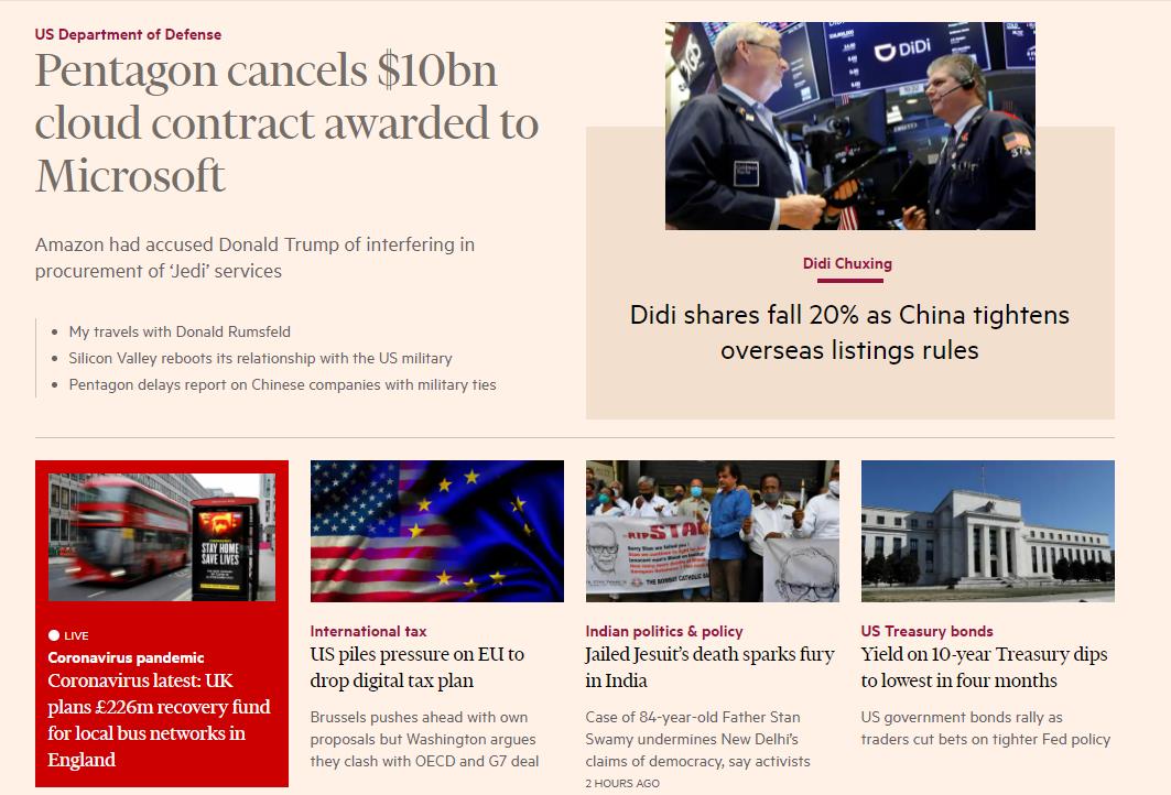 美国国防部周二宣布,将取消微软赢得的100亿美元云项目合同,并宣布了一项新的名为“Joint Warfighter Cloud Capability”的多供应商云计算合同。五角大楼表示,计划向亚马逊和微软征求合同提案,并补充称,他们是唯一能够满足需求的云服务供应商。但该机构将继续进行市场研究,以观察其他云服务供应商是否也能满足要求。