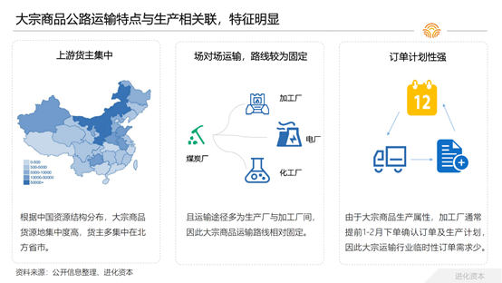 由于大宗商品和生产高度相关,其上游货主相对集中,线路较为固定,多为场到场运输,订单的计划性较强,临时性订单需求较小。