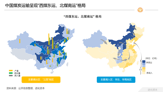 以煤炭为例,因煤炭资源分布集中度高,我国煤炭运输呈现“西煤东运,北煤南运”的格局。2020年,煤炭调出省市净调出量为16.6亿吨。其中晋陕蒙地区15.85亿吨,主要调往华东、京津冀、中南、东北地区及四川、重庆。“十四五”期间,煤炭仍将占到我国一次能源消费的一半以上。全国煤炭开发总体布局是压缩东部、限制中部东部、限制中部和东北、优化西部。