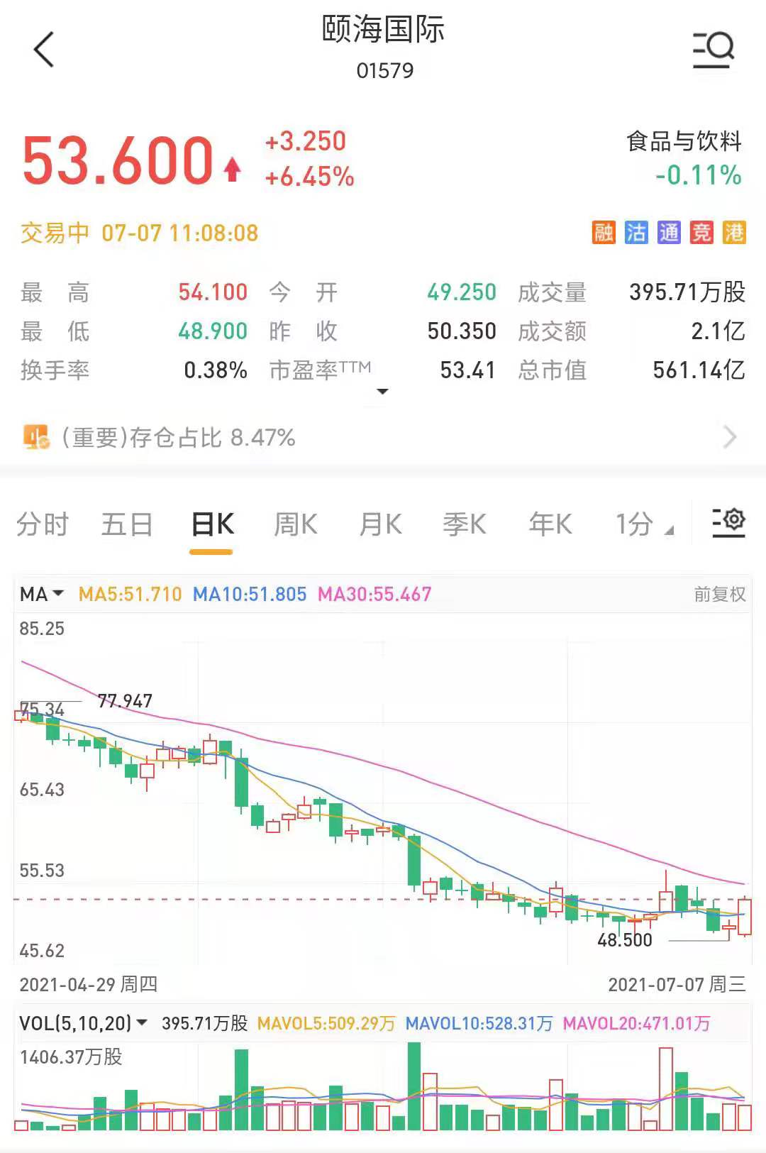 截至发稿,颐海国际涨超6.45%,成交额达到2.1亿港元,总市值为561.14亿港元。