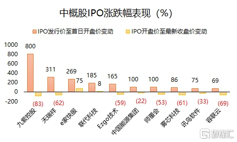 除此之外,一些赴美IPO首日股价高开的公司,后续表现也出现不理想的状态。