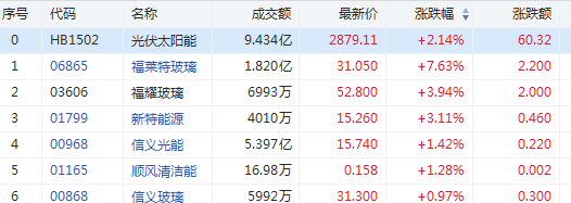 港股光伏太阳能股拉升,福莱特玻璃涨超7%