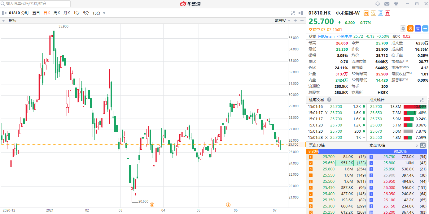 截至发稿,小米股价微跌0.77%报25.7港元,这意味着仍有约超30%的上涨空间。