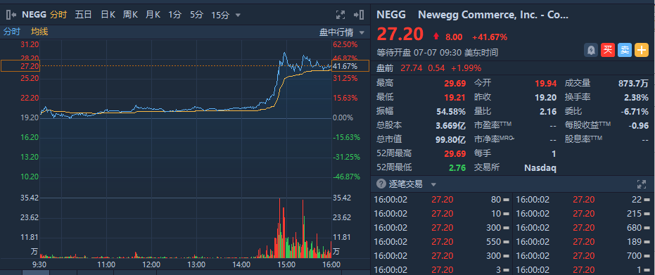 新蛋Newegg(NEGG)一度飙升52%,网站抽奖活动奖品包括热门英伟达(NVDA)显卡