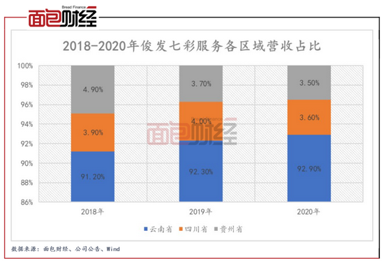 公司业务集中于云南省,区域特征明显。2018-2020年,公司在云南省的在管面积分别为2112.3万平方米、2435万平方米和2583.2万平方米,分别占总在管面积的比例为92.8%、93.3%和92.1%。同期,公司在云南省的物业管理服务收入分别为2.99亿元、4.38亿元和5.42亿元,占总收入的比例分别为91.2%、92.3%、92.9%,均超过九成。