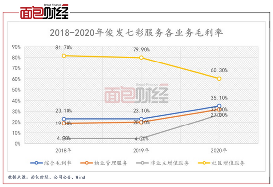 但值得注意的是,社区增值服务毛利率由2018年的81.7%降至2020年的60.3%,两年来下降了21.4个百分点。