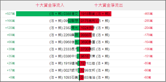 淡仓(认沽证及熊证)方面,周三港交所相关淡仓单日录得约927万港元资金净流入,融创相关淡仓则有单日465万港股资金净流出。