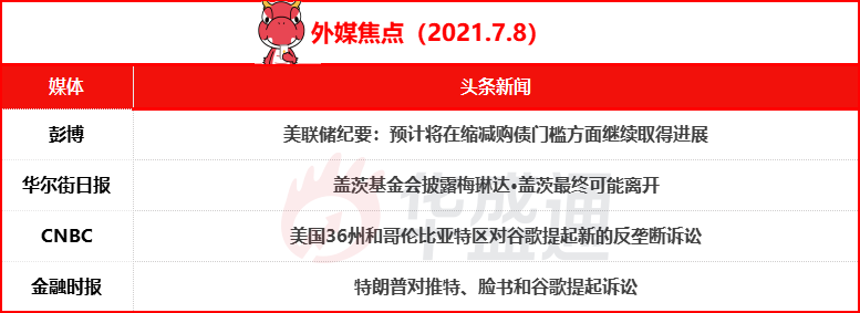 6月议息会议纪要显示,委员会“实质性进一步进展”的标准普遍被认为尚未达到。 多位与会者提到,鉴于收到的数据,他们预计开始降低资产购买速度的条件将比之前会议上预期的要早一些得到满足。官员们预计,缩减购债门槛方面的相关进程将继续取得进展。会议纪要称,美联储可能考虑提高隔夜逆回购操作的交易对手限额,官员对如何缩小抵押贷款支持证券(MBS)购买规模仍存分歧。