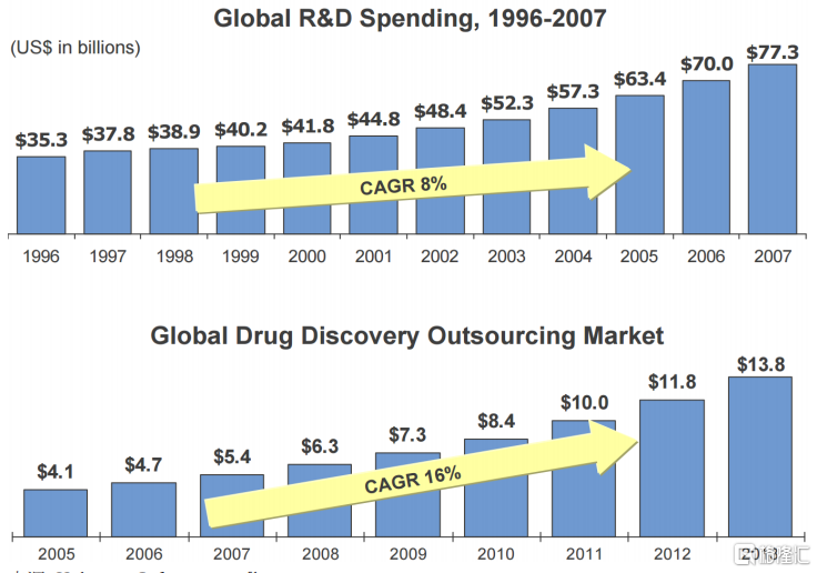 在药品安全监管、原研药成本压力加大,以及轻资产的Biotech(生物科技公司)日渐兴起的大趋势下,研发外包组织越来越成为整个医药行业里的中坚力量之一。