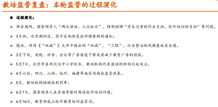 中信证券杨帆团队指出,监管的重点在于规范引导义务教育阶段校外学科类培训,预计后续政策将进一步完善,支持教育减负工作。