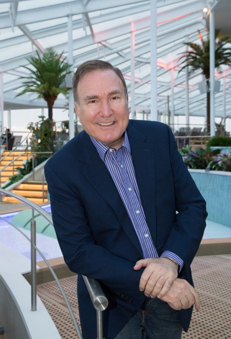 皇家加勒比邮轮公司(Royal Caribbean Cruises)的首席执行官理查德•费恩双脚搭着搁脚凳,坐在“Celebrity Edge”号邮轮的露台上,“Celebrity Edge”号是一年多以来从美国启航的首艘邮轮。面对新冠疫情期间公司数十亿美元的巨额亏损,费恩依然保持着幽默感。