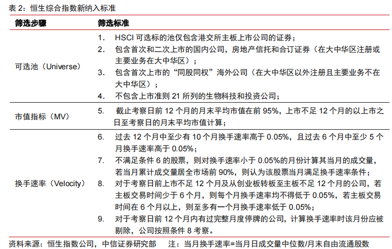 而届时被纳入恒生综合指数成分股的相关公司有望被纳入“港股通”名单,那么纳入恒生综指和港股通具体有哪些标准,而为什么说相关公司纳入以后有望提升超额收益?