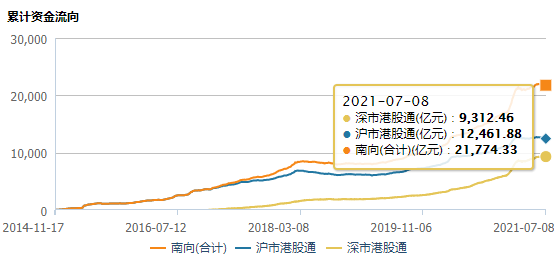 根据机构中信证券测算,预计南向资金2021年全年净买入将达到8000亿港元,其中下半年料将保持稳定净买入,流入规模预计将达到3300亿港元。