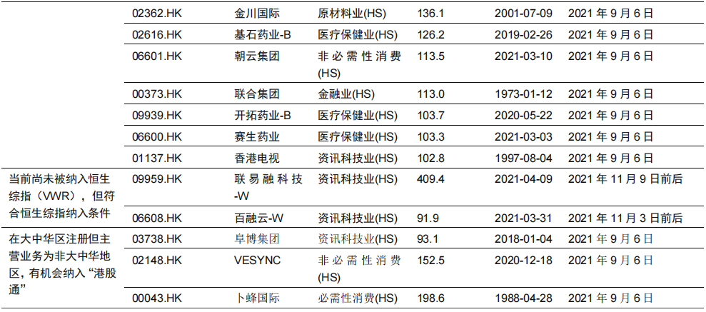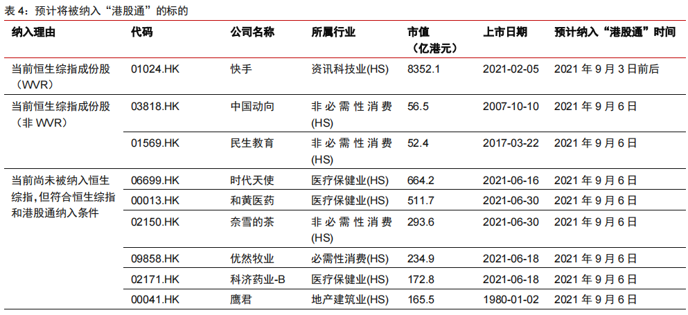 正式的调整预计将于2021年9月6日生效,届时港股通股票池也将随之调整。
