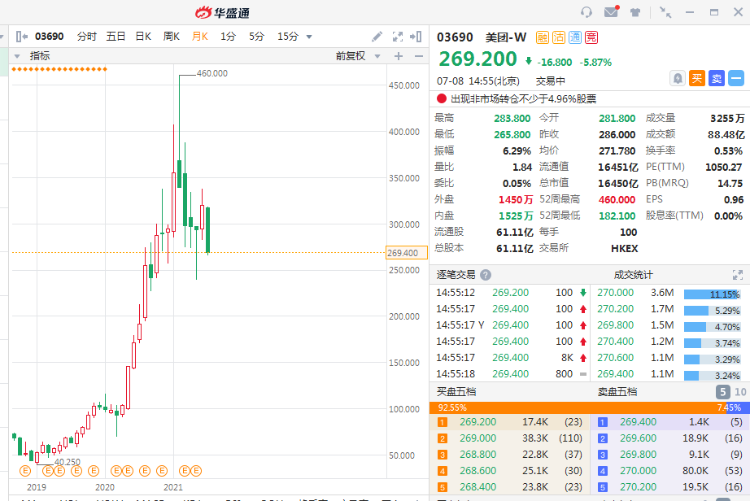 当时那一轮下跌至2019年1月创下美团历史最低价40.25港币,随后开启长达两年的上涨之路到今年最高点460港币。