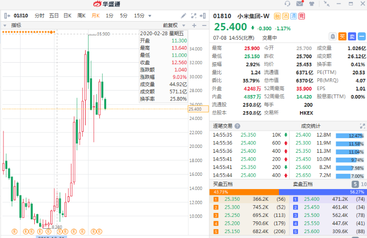 2018年7月小米在香港上市。彼时雷军豪言“要让在上市首日买入小米股票的投资人赚一倍”,网友们也称其为“年轻人的第一支股票”,然而一年后,市值一度缩水过半,最低价仅为8.92港币。