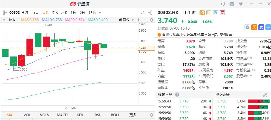 - 中泰证券预计中手游2021年PE为5.3倍,低于港股纯游戏公司平均水平的8.6倍,中泰认为,公司拥有丰富的游戏储备,尤其是与腾讯、字节强大流量平台合作的潜在爆款有望年内上线,或将为公司带来大幅收入增长,刺激估值提升。