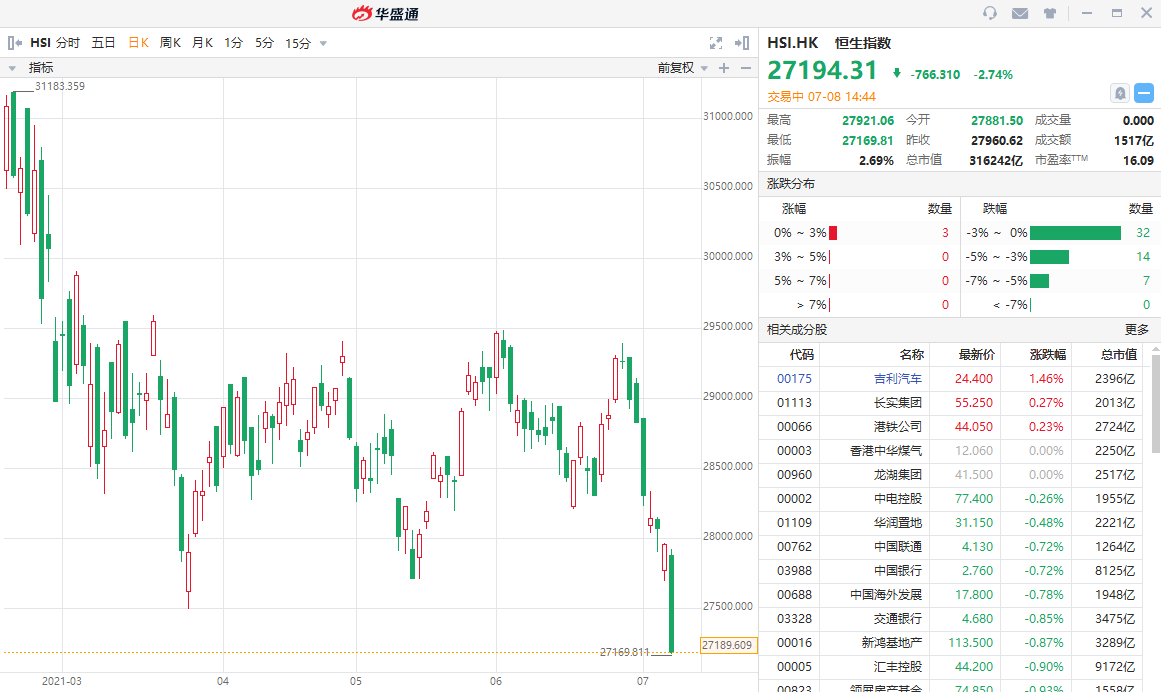 恒生指数走势 来源:华盛通