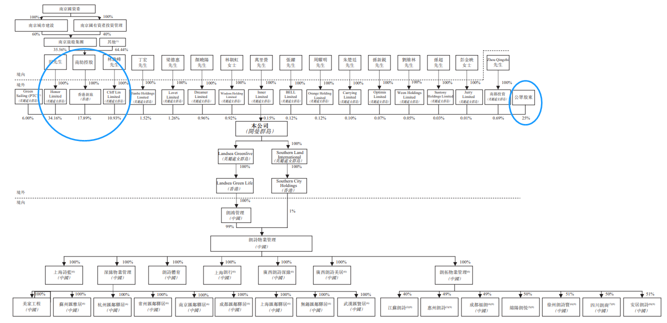 上市后,朗诗绿色生活的股权架构同样较为集中,公众持股也仅为25%。
