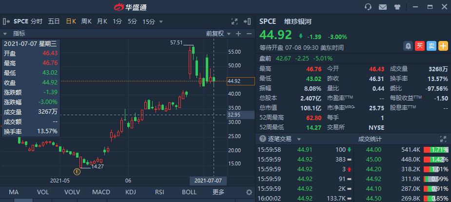 今年二月份,维珍银河披露了推迟一些飞行测试的消息,并暂缓商业运营,股价于5月初跌至15美元以下。但飞行测试在5月下旬恢复,6月,该公司获得了美国联邦航空管理局的许可,可以售卖座位并运送乘客。该股在6月底飙升至55美元以上。
