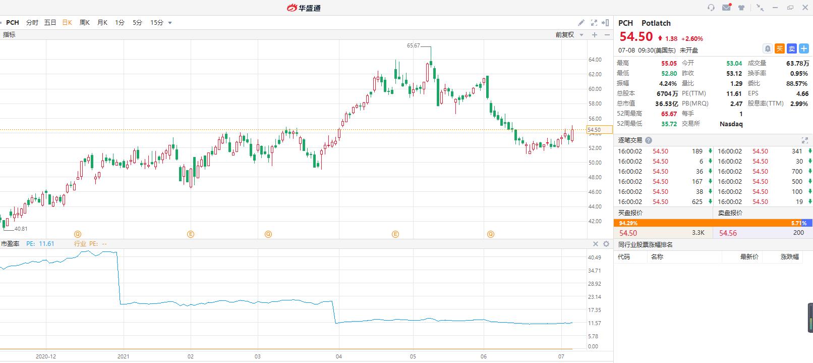 Potlatch Corporation 是一家房地产投资信托基金 (REIT),在阿拉巴马州、阿肯色州、爱达荷州、明尼苏达州和密西西比州拥有林地。因此,它的收入来自对其森林资源的长期管理。该公司还开展土地销售和开发业务,并通过其应税 REIT 子公司经营木制品制造设施。