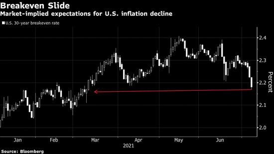 30年期盈亏平衡通胀率跌至2.18%一线,创3月以来最低水平