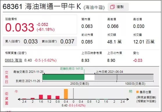 2、看错方向:海油瑞通一甲牛(68361.HK),周三小幅下跌3.4%。