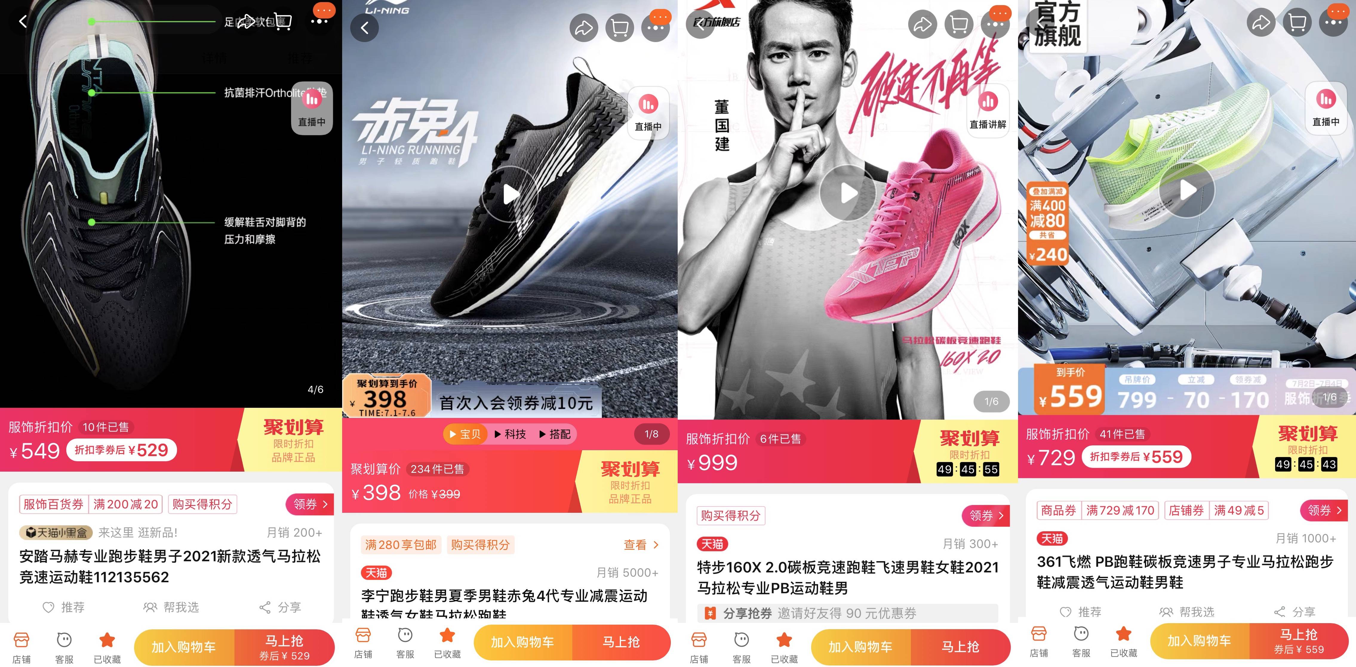 近年来,随着下沉市场被点燃,耐克、阿迪达斯也瞄准了安踏“腹地”——国内低线城市大众市场,开始积极布局电商业务。在618、双11等活动期间,对商品大打折扣,甚至开出三四十元一件半袖,一百元一双鞋的低价。这样的价格虽然与其高端运动品牌的形象略不符,但消费者十分买账。