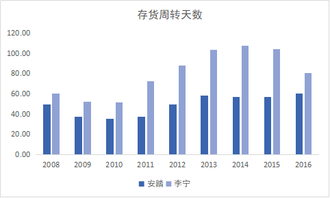 面对行业困境,安踏由品牌批发模式转变为品牌零售,并不断提高ERP系统的覆盖率,对经销商按照统一标准进行零售管理,提升销售网络的整体质素及营运效率。受益于商业模式转型和“柔性生产”制度的推广,安踏的存货周转情况显著优于同行。2011年,李宁的平均存货周转天数同比增加了21天,而同期安踏仅增加2天。