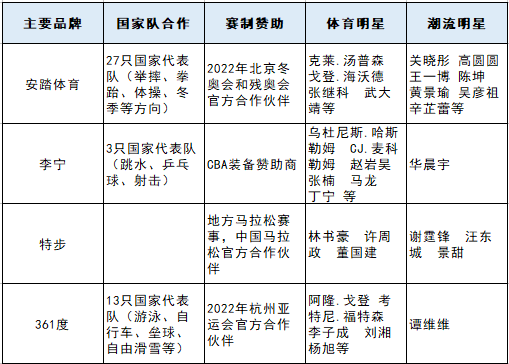 专业营销资源有限,运动品牌往往要花费大手笔来抢夺赛事赞助权。目前,安踏已拿下2022北京冬奥会及冬残奥会官方合作伙伴这一重磅资源,同时赞助了举摔、体操、拳跆等27只国家队。同期,李宁仅掌握3只国家队的赞助权。
