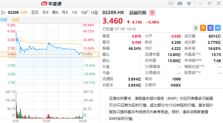 华盛资讯7月9日讯,跨境电商平台-YesAsia母公司喆丽控股(02209.HK)盘中一度涨逾45%,首挂收涨5.49%,一手账面浮盈180港币,全日成交额2.77亿港币,最新总市值13.68亿港元。