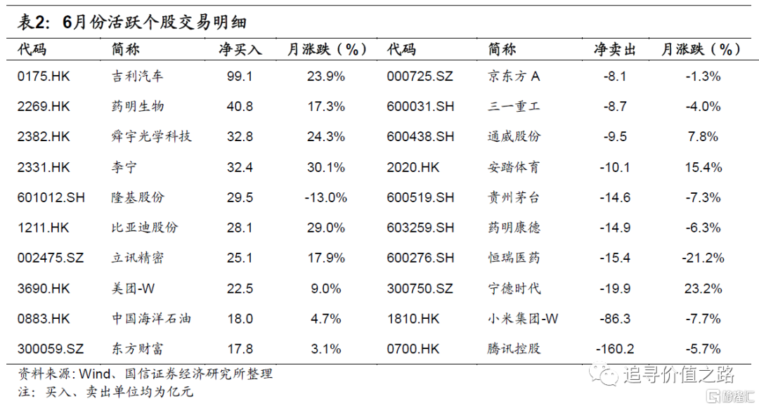 具体来看,6月份外资持仓变化主要存在以下特征: