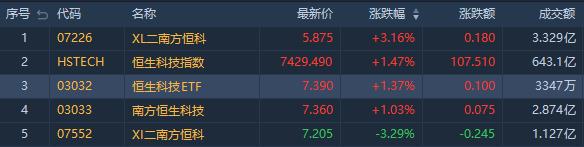 看多恒指相关ETF走强,南方两倍做多恒科(07226.HK)涨3.16%,成交额3.33亿港元;南方恒生科技(03033.HK)涨1.03%,成交额约2.87亿港元;