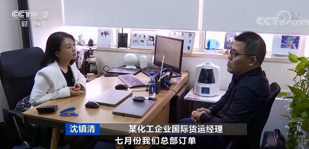 某化工企业国际货运经理沈镇清:首先是我们的舱保(舱位),其实我们的需求远远高于舱保(舱位),所以现在没办法只能去找代理,没想到今年到现在已经涨到了五六倍的价格。发往北美航线小箱是15000美元左右,大箱是18000美元左右。